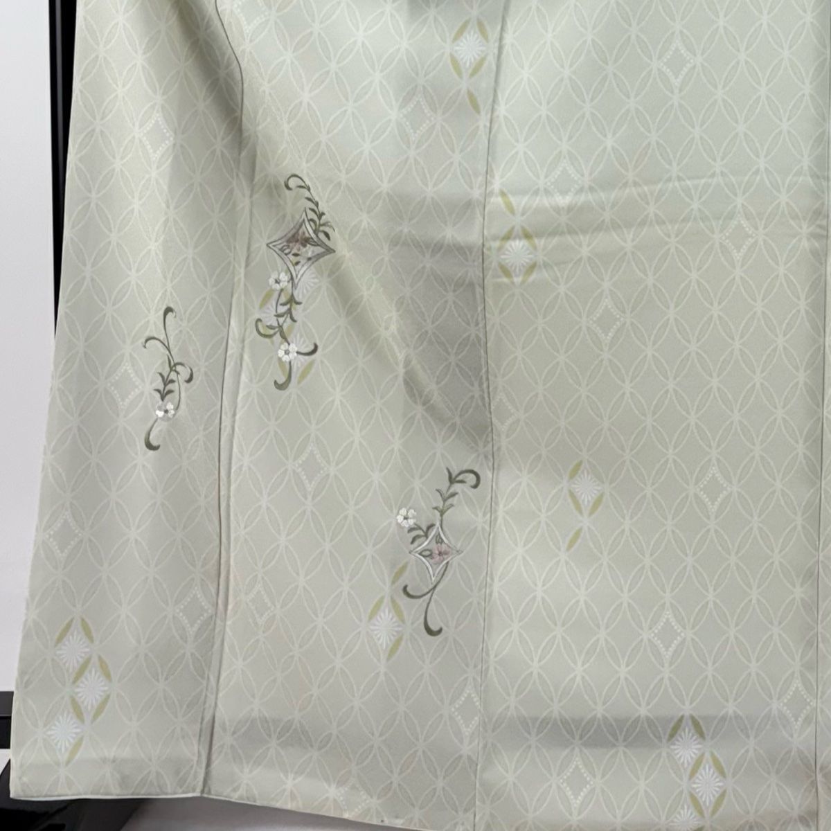 付下げ 身丈169 cm 裄丈66.5 M 袷 洗える着物 草花 七宝 金糸 刺繍 灰緑 化繊 秀品