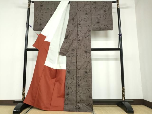 平和屋着物 本場大島紬 古代染色純泥染 7マルキ 重田実英 洋花文 証紙付き 正絹 ud