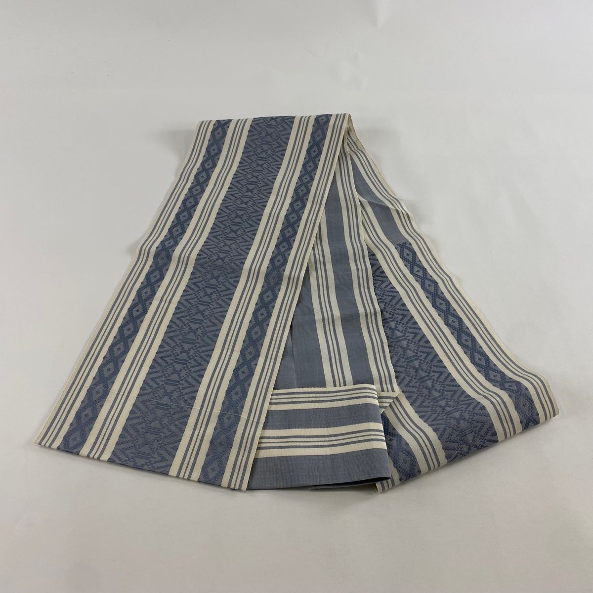 名古屋帯 秀品 八寸名古屋帯 松葉仕立て 縞 幾何学 青灰色 正絹