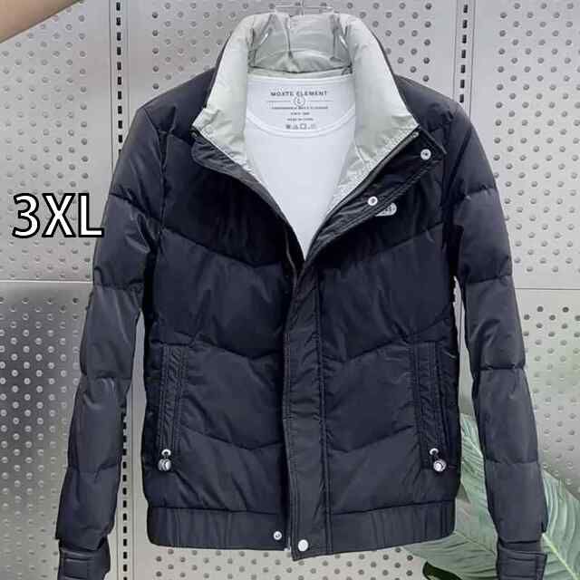 3 XL 秋冬 コーデ メンズ 服 シンプル ファッション オシャレ 大人 かっこいい 大きいサイズ ストリート 紳士服 チェック柄 エンボス スタンド ダウン ジャケット アウター スリム 白