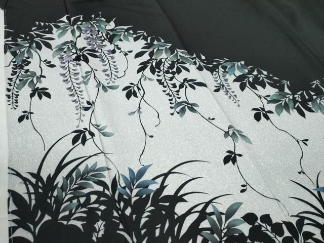 平和屋着物 訪問着 作家物 枝垂れ花文 シルエット 黒地 さが美扱い 正絹 yc