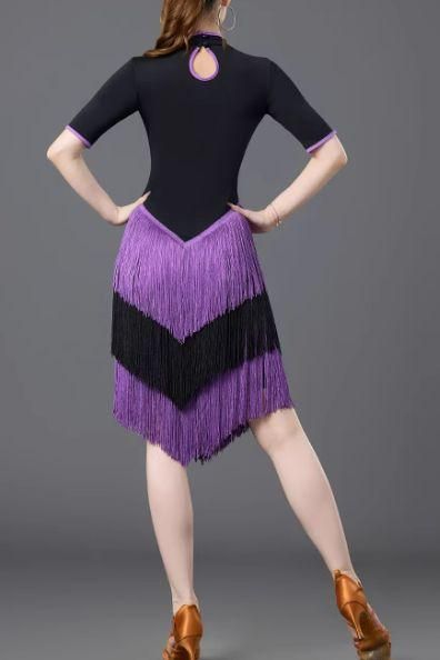 社交ダンスドレス ラテンドレス 半袖 フリンジ 競技 オーダーメイド