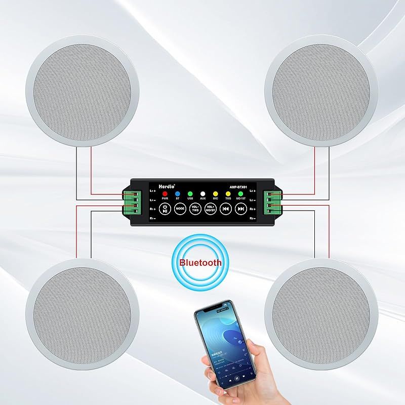 Herdio 600 W ブルートゥース 天井埋め込み型スピーカー 2ウェイ ラウンド型 1本 ホワイト 18.5 cm 8Ω 天井スピーカー 4スピーカー 1