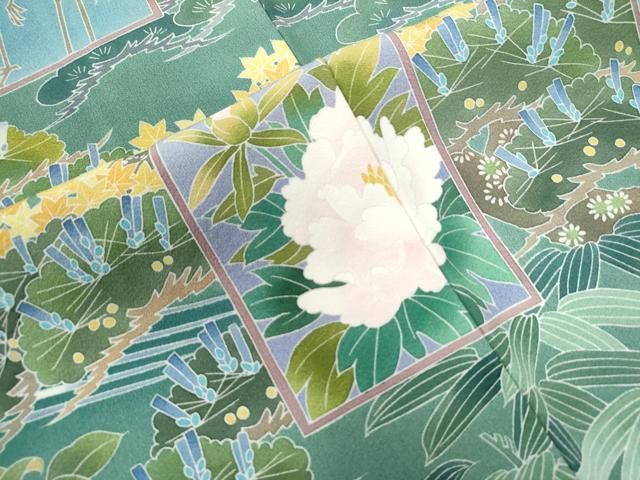 平和屋着物 十日町友禅作家 阿部佳雪 色留袖 色紙群鶴浜松花文 正絹 yc