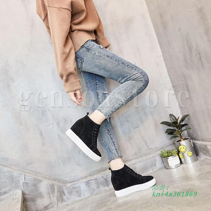 22.0 24.5 CMスニーカー インヒールスニーカー 8cmヒール レディース 疲れない レースアップ 歩きやすい ウェッジソール スエード 厚底スニーカー 靴 kni 4 a 361869