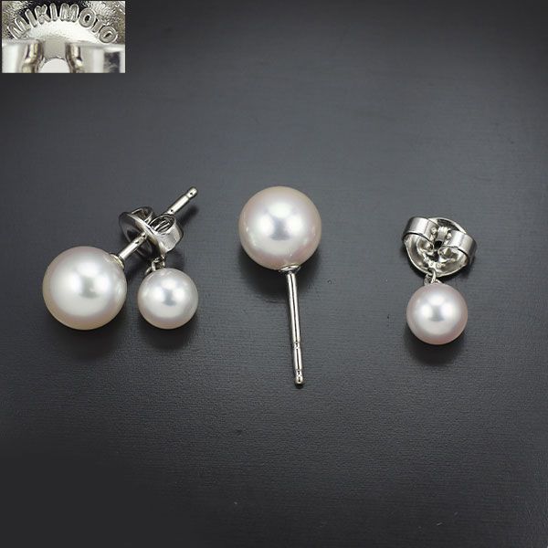 ミキモト K 18 WG アコヤ真珠 ピアス 径約5.5-7.5 mm