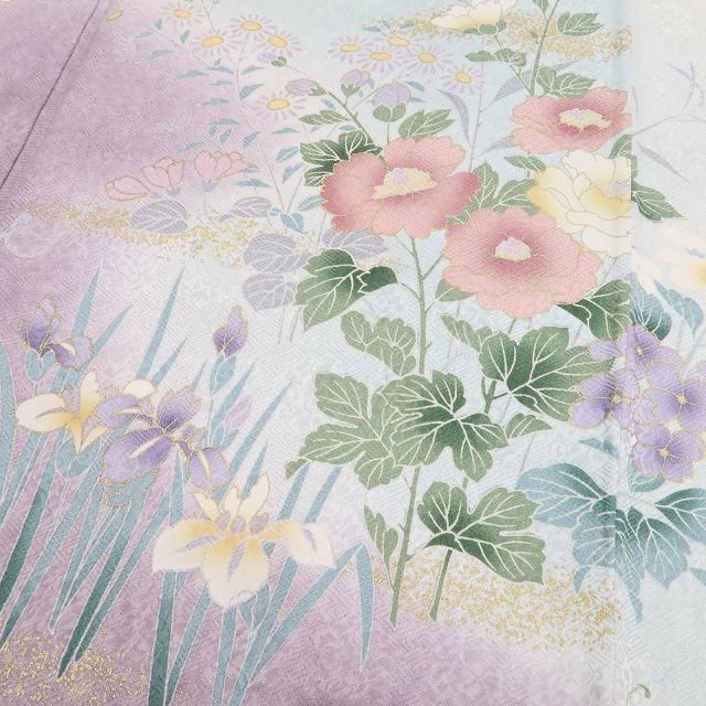 こちらのお着物は、ライトトーンの彩色で意匠の美しさにフォーカスしたデザイン性の高い花景を込めております。丁寧な柄付けとしっかりと視覚を捉えるデザイン力は必見の価値あり!“お洒落味を楽しむ大人の奥行”として貴女のお気に入りになること間違いなし。