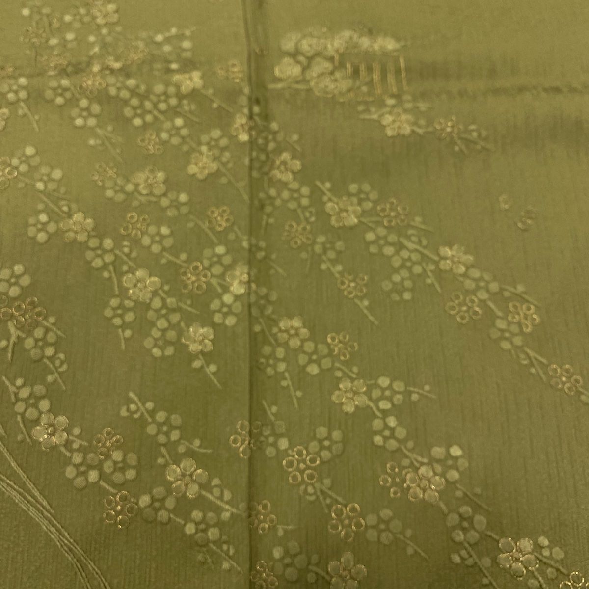 付下げ 身丈160 cm 裄丈62.5 S 袷 梅 源氏香 金糸 刺繍 よもぎ色 正絹