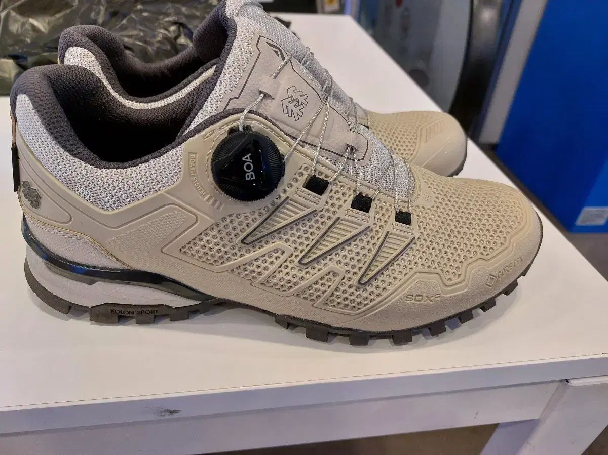 KOLON SPORT コーロンスポーツ ベージュ色 登山靴 240サイズです。GORE-TEX ゴアテックス 素材にBOA システム 적용되어 있습니다。スタイリッシュなデザインで登山はもちろん、軽いトレッキングにもよく似合います。コメント없으시면 바로 安全決済해주시면 됩니다!