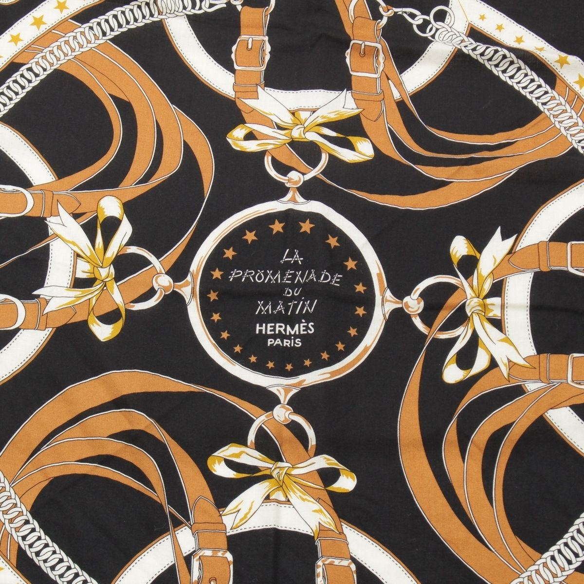 エルメス カレジェアン カシミヤ シルク カレ140 LA PROMENADE DU MATIN 朝の散歩 ストール ブラック×ブラウン