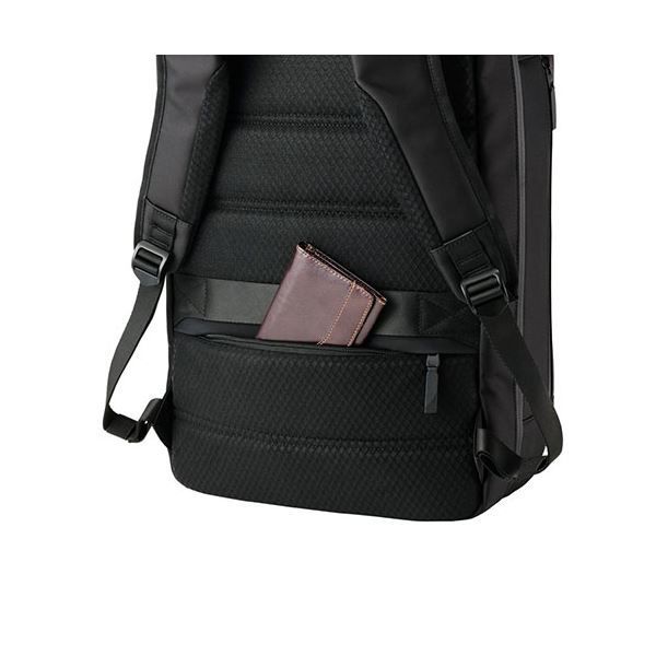 ■背面にファスナー開閉式の隠しポケットを装備。背負いながらでも財布やスマートフォンなどをスムーズに取り出せます。
