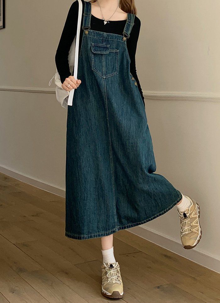 ジャンパースカート レディース デニムワンピース ワンピース サロペット サロペットスカート ロング丈 大人 無地 着痩せ 秋冬 体型カバー しゃれ ゆったり シンプル きれい 20代 30代 40代 xkmilyx 68 DZ 20