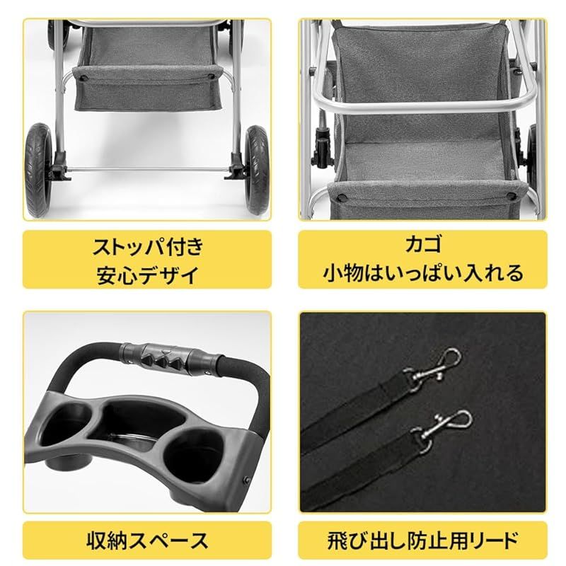 【ワンタッチ収納】ワンタッチで簡単に折りたたみ、場所が取らず、コンパクトに収納できます。旅行中でもとても便利です。犬カートバギーの下部には、大容量の収納バスケットが付き、散歩用グッズやペット用品は収納できます。
