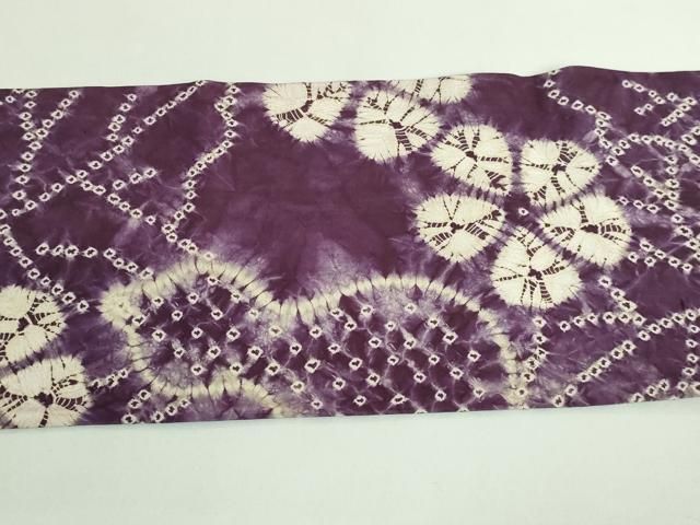 上 岩手の匠 草紫堂 南部絞り 紫根染 創作 九寸名古屋帯 絞り 瓢箪花文 kh 5
