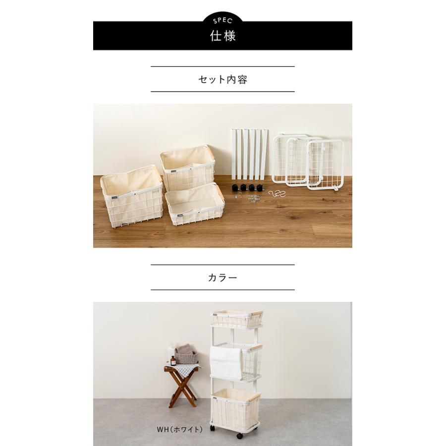 ・セット内容:布袋S×1、布袋M×2、バスケットS×1、バスケットM×2、アッパートレイ×1、セカンドトレイ×1、アンダートレイ×1、支柱×6、キャスター×4、フック×3、スパナ、レンチ、ネジ×24、取扱説明書