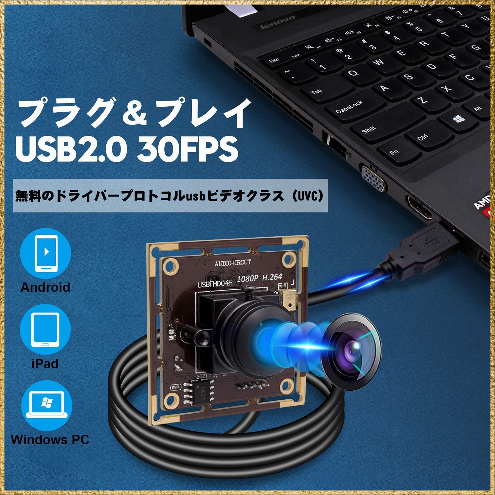カメラは、USBモジュール1メートルのUSBケーブルを装備します。