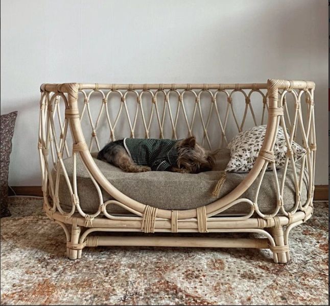Shops 7 ペットベッド 手作りのラタン編みペットベッド 犬用ソファ 猫ちゃんのプリンセス用ベッド 四季を通じて使える取り外し