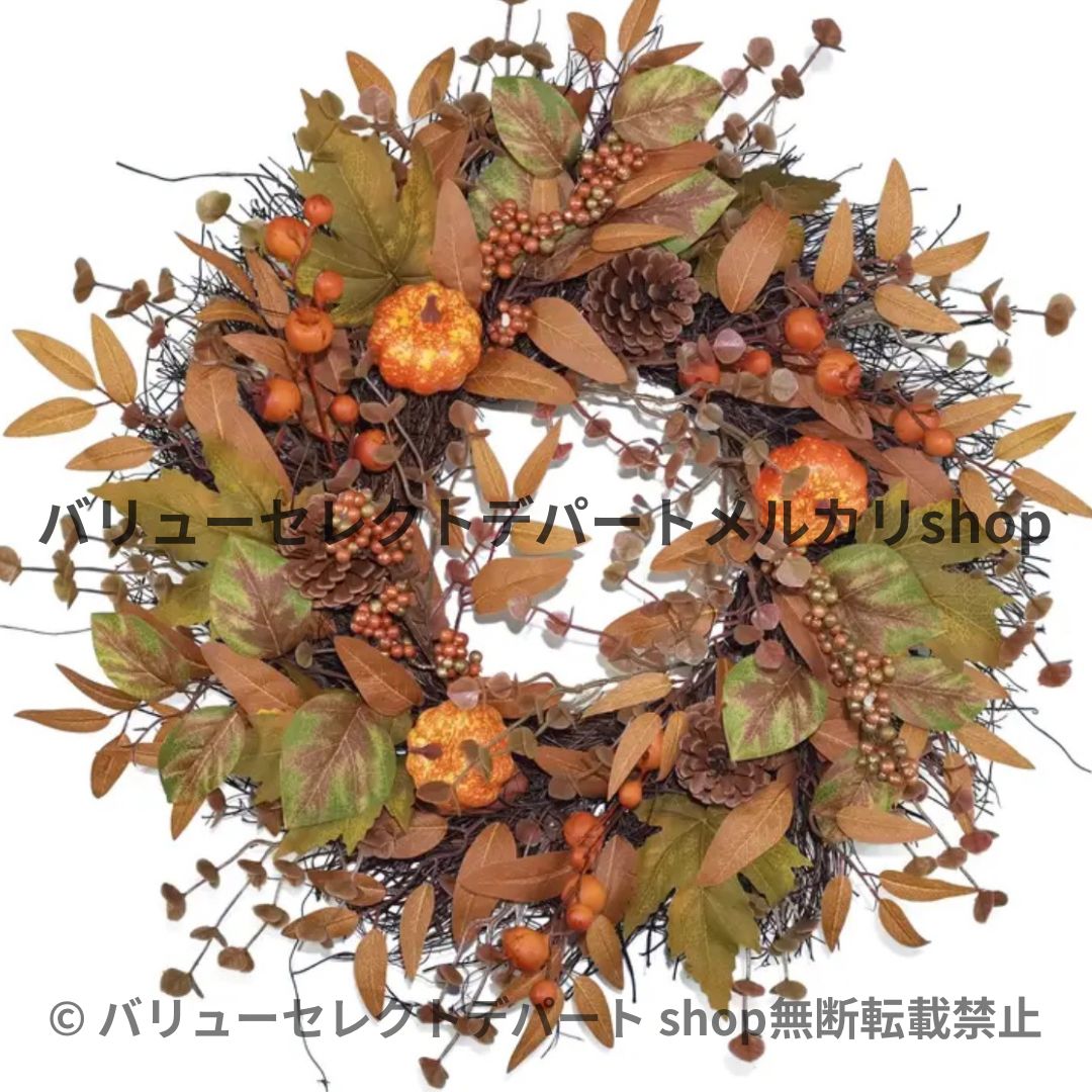 リース 玄関 黄色 花 造花 ガーデン ガーデニング おしゃれ 秋 屋外 飾り 庭 置物 子供 こども 撮影背景 装飾 背景 人工カボチャリース 玄関ドア用 秋のドアリース オレンジ色のユーカリの葉 ベリー付き 感謝祭 収穫祭 屋内 お祝い
