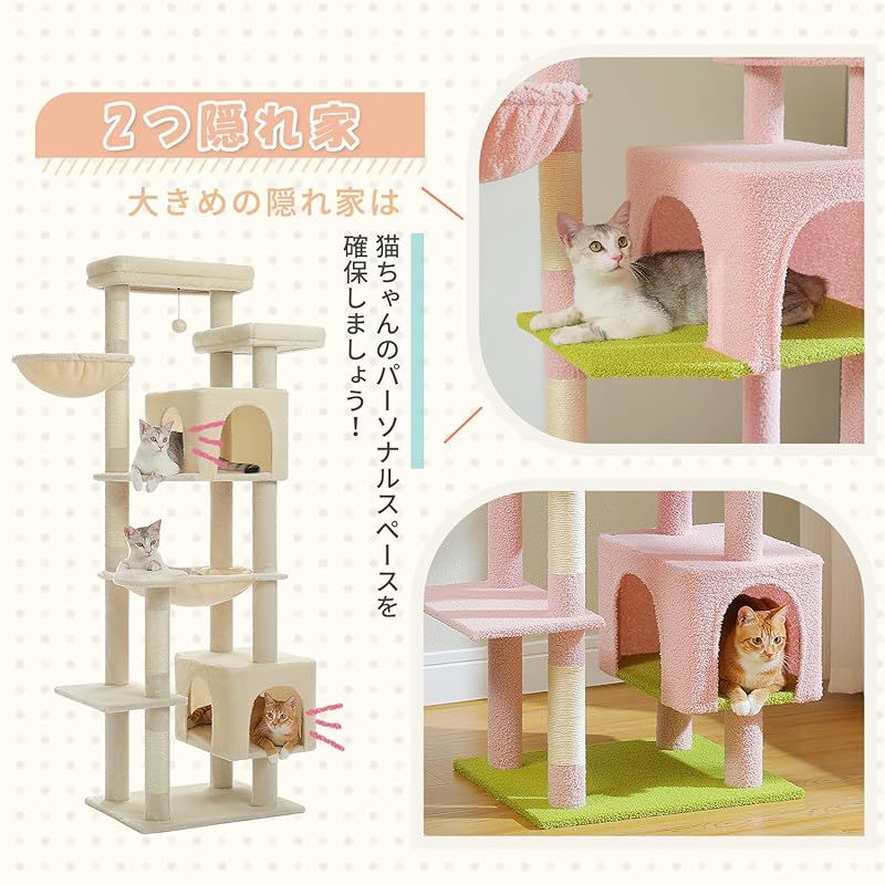 ぺテぺラ キャットタワー 大型猫用 スリム 多頭飼い 猫タワー 据え置き型 コンパクト 省スペース ハンモック サボテン 爪研ぎ おしゃれ かわいい シンプル 転倒防止ベルト付き 展望台 猫ベッドカバー取り外し 運動不足解消 0