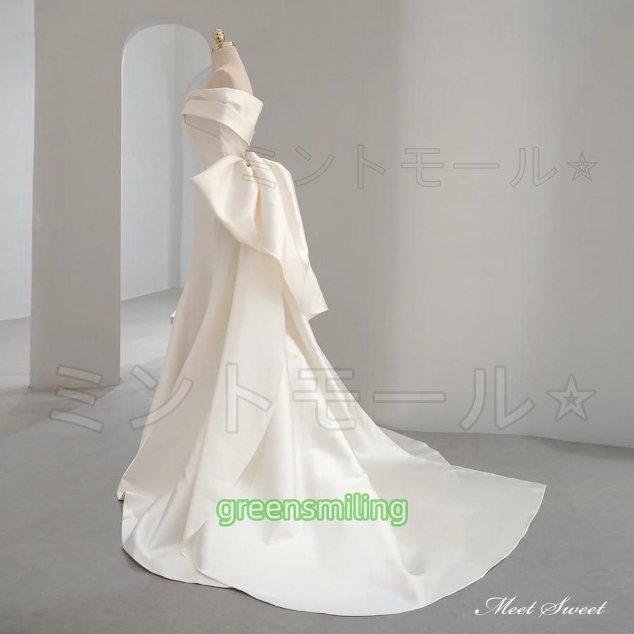 ウェディングドレス ロングドレス マーメイドドレス オフショルダー サテン リボン 上品 二次会 結婚式 前撮り ブライダル 花嫁 ウエディン