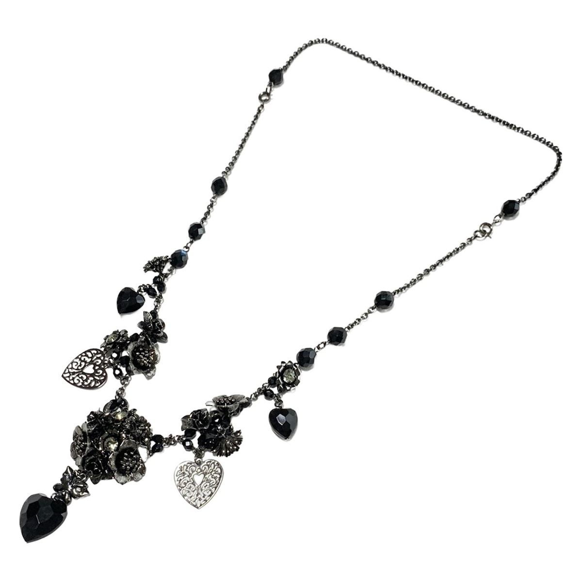 ANNA SUI アナスイ ネックレス - 黒 ハート フラワー 花 ラインストーン