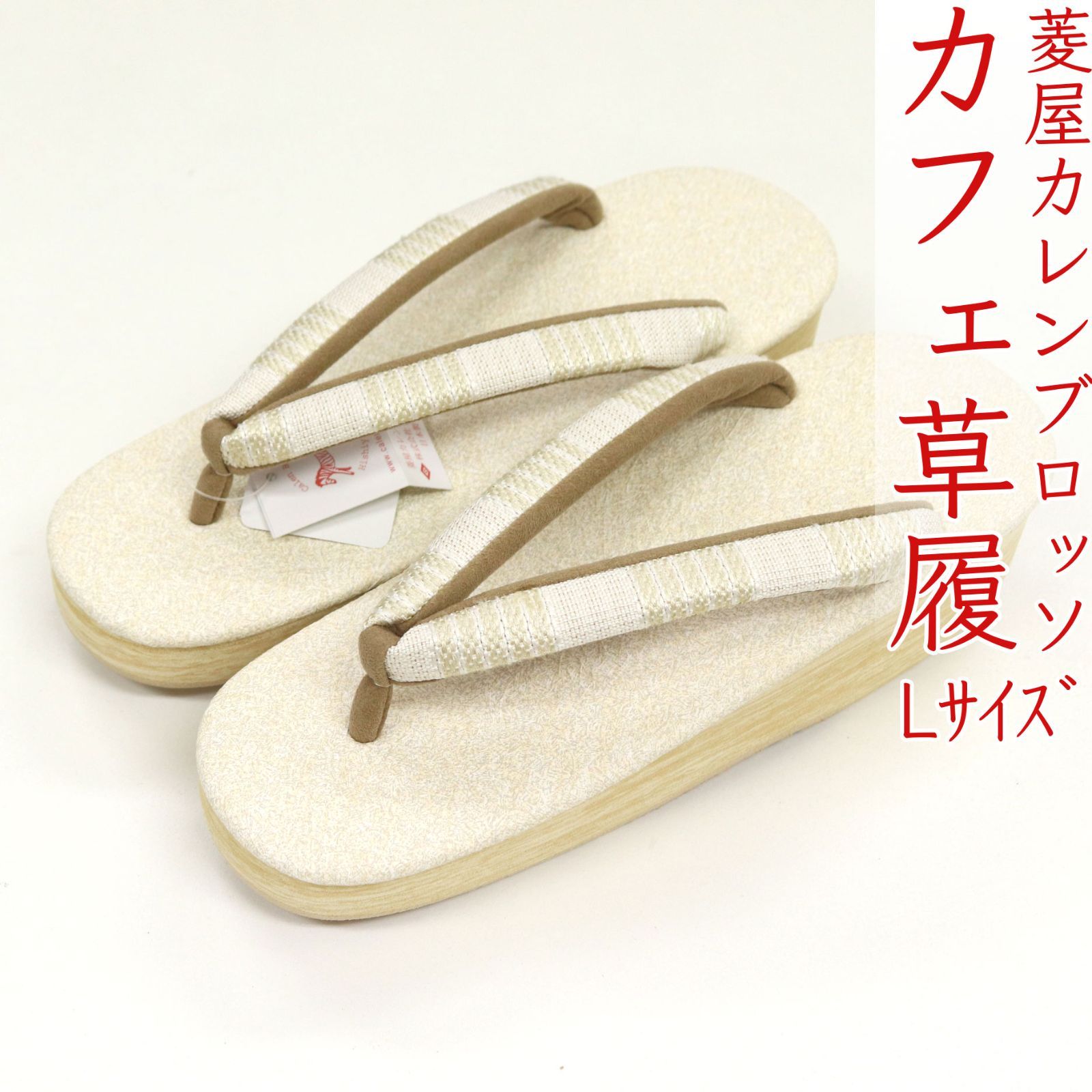 sa 3417 菱屋カレンブロッソ 博多織 鼻緒使用 カフェ草履 オフホワイト色 ビブラムソール Lサイズ