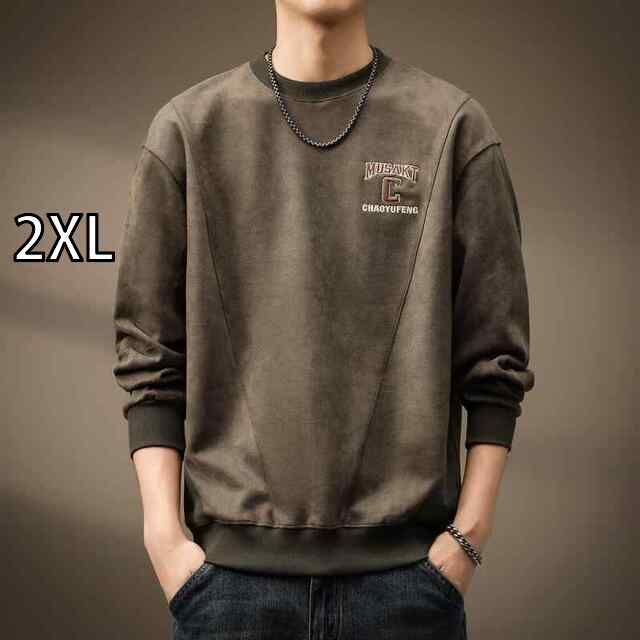 2 XL メンズ ファッション 服 オシャレ シンプル 大人 かっこいい 大きいサイズ ストリート 紳士服 秋 ソフトスエード レトロ スウェット シャツ ヘビー アメリカン カジュアル トップス