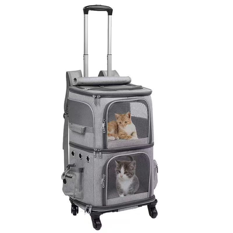 ペットキャリー キャスター付き 折りたたみ可 二層トロリーバッグ 小型犬 猫 キャリー カート ペット鞄 メッシュ窓