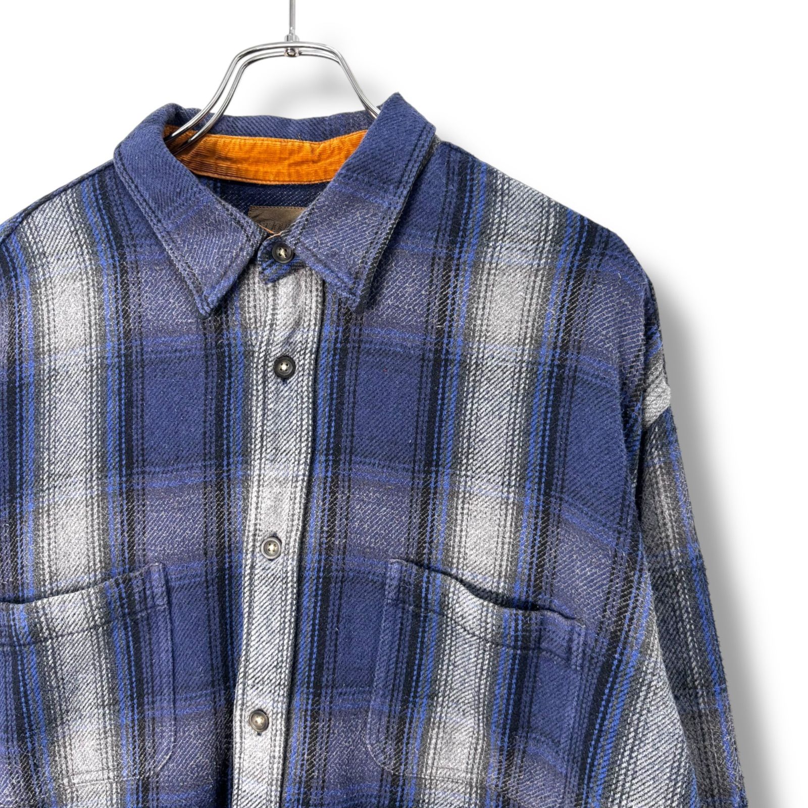90 s 00 ST.JOHN BAY Ombre Check Heavy Flannel Shirts XL 2000年代 セントジョンズベイ ヘビーネルシャツ ヘビネル ネルシャツ チェック プレイド オンブレ シャドーチェック