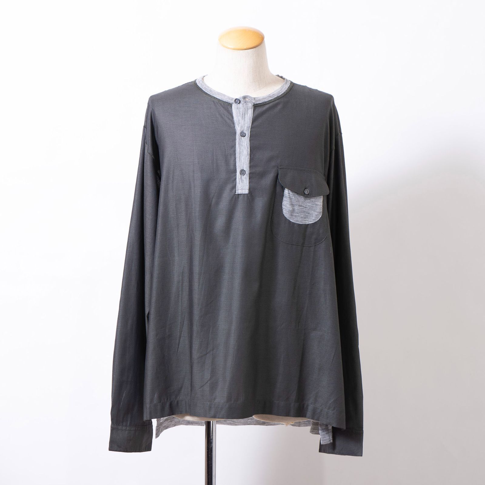 ドルチェ&ガッバーナ DOLCE-GABBANA ヘンリーネック 長袖カットソー 切替デザイン カーキ×グレー 再構築 ドッキング ポケットTシャツ 56 メンズ イタリア製 トップス ロンT グランパシャツ スモックシャツ