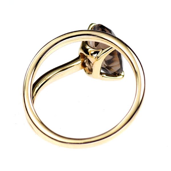 縦約 9.8mm×横約 7.7mmのスモーキークォーツをセットした、シンプルなK10イエローゴールドリングです。