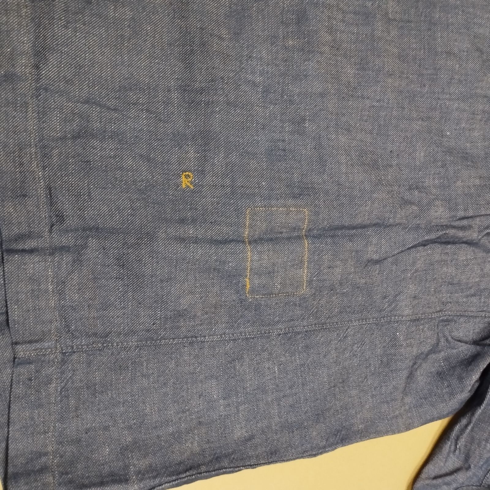 保管時に皴になってしまいましたが、数回使用したのみなので、大きな汚れやダメージはありません。インディゴ染め特有の風合いがありますので、多少の着用感を感じられるかもしれません。
