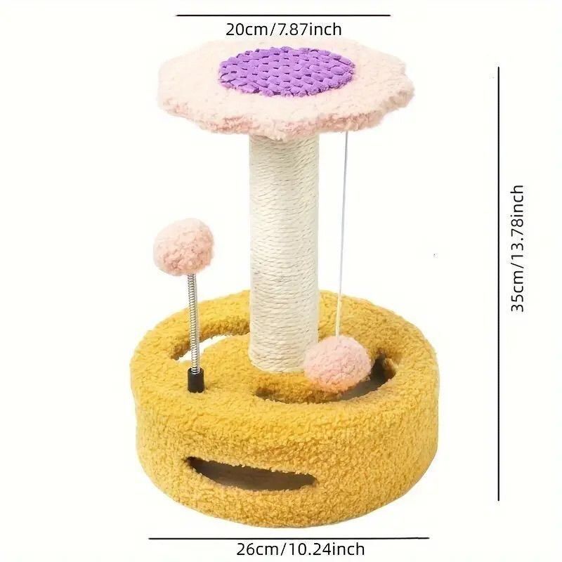 キャットタワー 爪とぎ 猫 おもちゃ ミニサイズ 麻 ボア生地 爪研ぎ 猫タワー 鈴 ポール ボール かわいい お花 フラワー バイ おしゃれ