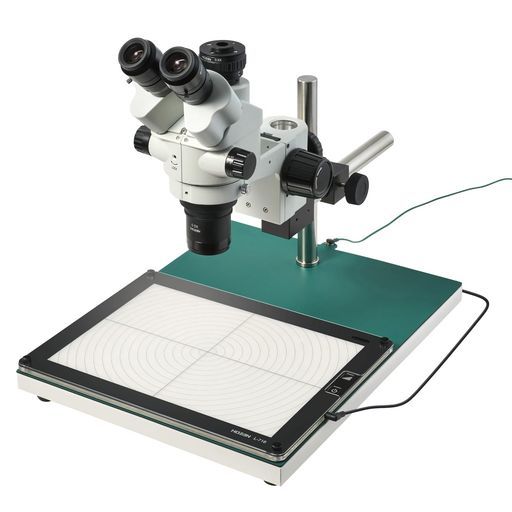 カメラが接続できる三眼実体顕微鏡。大きい観察対象に最適(面発光照明付)。お手持ちのCマウントカメラ※と接続して、撮影と観察作業が同時に行える三眼実体顕微鏡です。A4サイズの面発光照明付き。