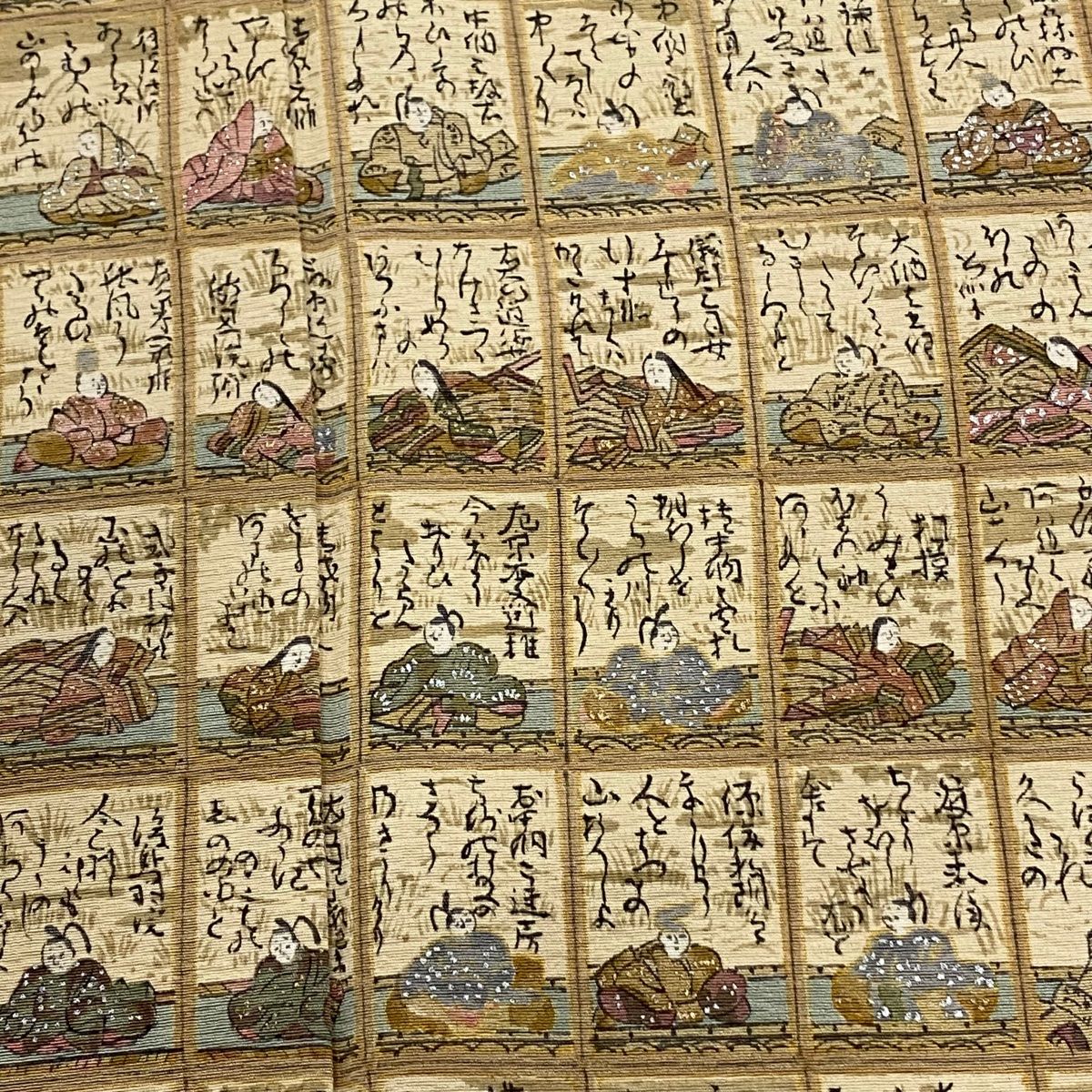 小紋 身丈156 cm 裄丈64.5 M 袷 樽本伊勢蔵 落款あり かるた 人物 金銀彩 山吹茶色 正絹