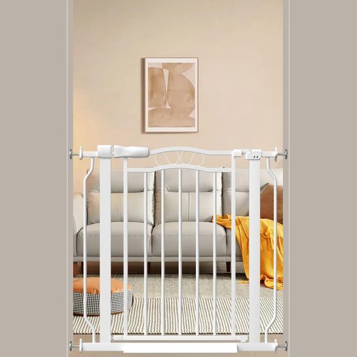 unumumベビーゲート設置幅75-86 cmホワイトペットゲート犬自動ロックバリアフリーゲート階段上扉開閉式赤ちゃん突っ張り式オートクローズ機能拡張 壁開閉式保護高さ78 cm