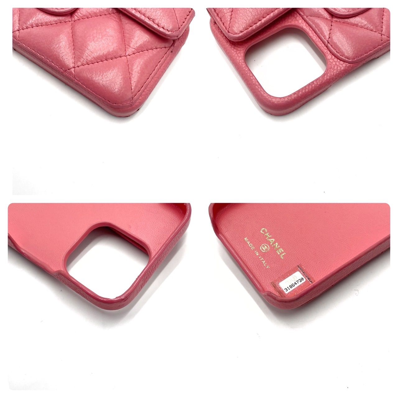 CHANEL シャネル スマホケース 携帯ケース iPhone 12 pro ココマーク フラップ マトラッセ キルティング シルバー金具 シルバーチェーン ロゴ型押しシリアルシール キャビアスキン 肩掛け 斜め掛け レディース ピンク