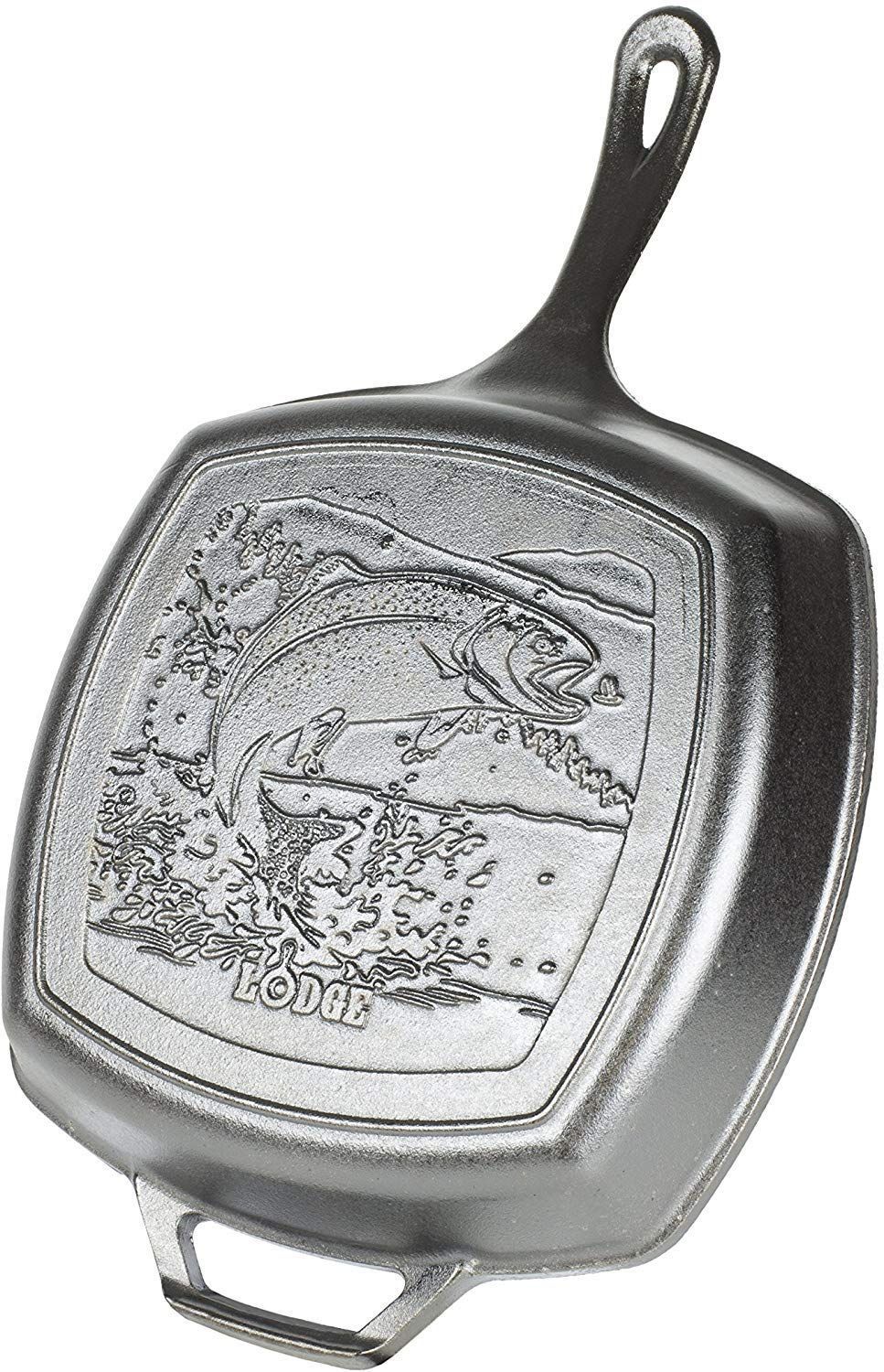 LODGE ロッジ ロジック スクエアグリルパン 10 1 /2インチ フィッシュロゴ L8SGPWLFIは野生動物のトラウトがデザインされた10 1 /2インチのスクエアグリルパンです。