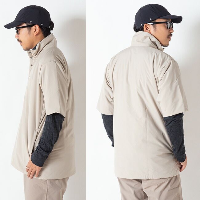 ベースレイヤーやミッドレイヤーに重ねれば上半身の主要な部分をカバーすることができ、長袖のインサレーションに比べて軽量でかさばらないことが特徴です。