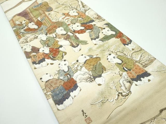 上 アンティーク 大正ロマン 丸帯 綴れ 手描き 唐子 金糸 s 5