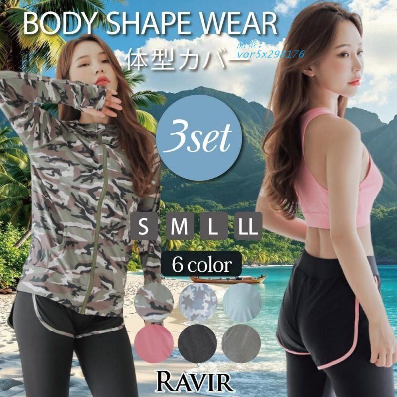 水着 レディース 体型カバー ラッシュガード 3点セット 女性用水着 フード レギンス vor 5 x 298176