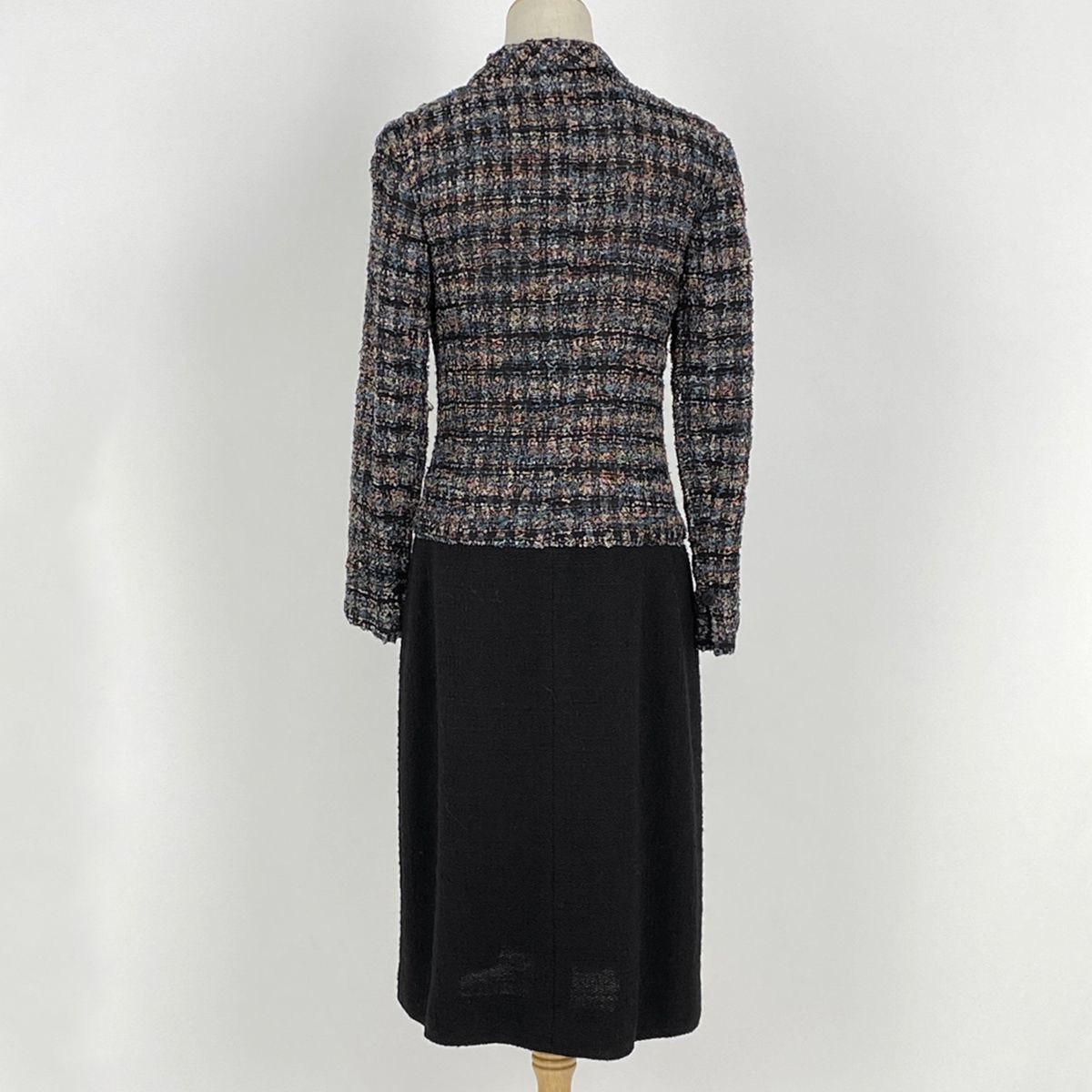 シャネル CHANEL ツイード ロング コート 切り替え 98 A アウター その他コート ウール ピンク ブラック レディース