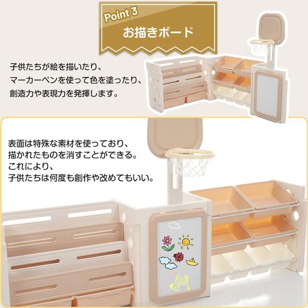 4 in 1 おもちゃ棚 絵本棚 描きボード 大容量 収納ラック バスケットゴール おもちゃ箱 引き出し 玩具箱 ラック ボックス 本棚 組立カンタン 自由組合