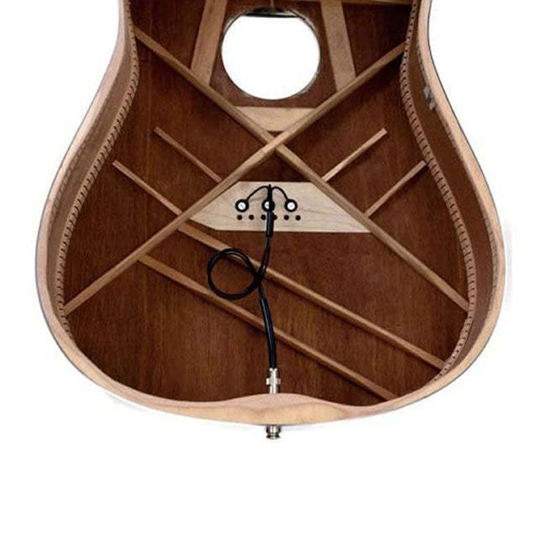 ブリッジプレート上の最適な位置に設置され、全ての弦の音をバランス良く拾い、ハーシュやパーカッシブな音にならず、サウンドボードの特性を忠実に増幅します。