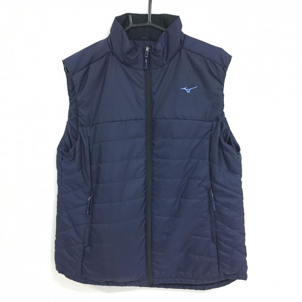 ミズノ 中綿発熱ヒーターベスト ネイビー 襟裏微起毛 ブレスサーモ混 通電 済 収納袋付 メンズ M ゴルフウェア MIZUNO