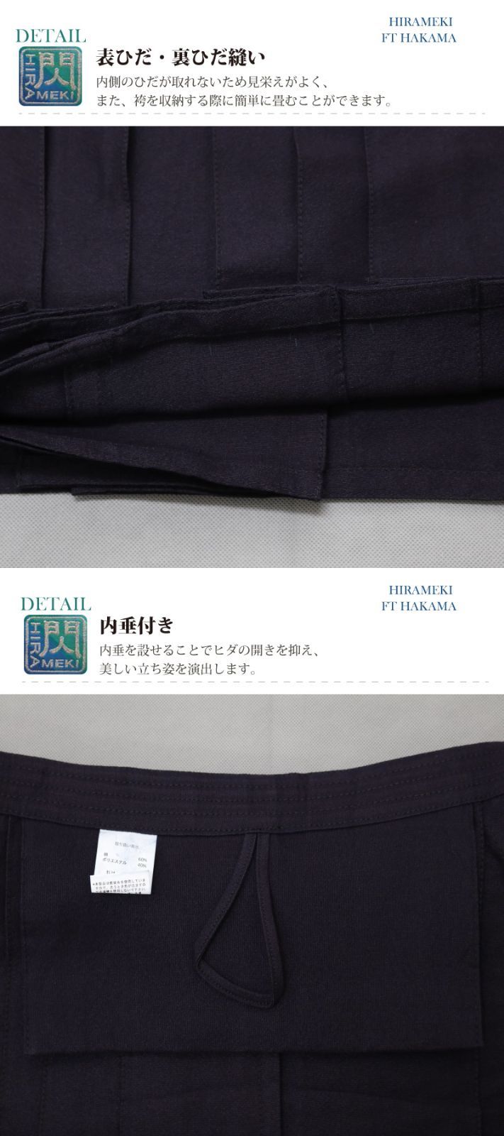 剣道 袴 閃 ヒラメキ FT FT袴 紺色 23~28号 刺繍ネーム5文字まで無料 松勘 武道園