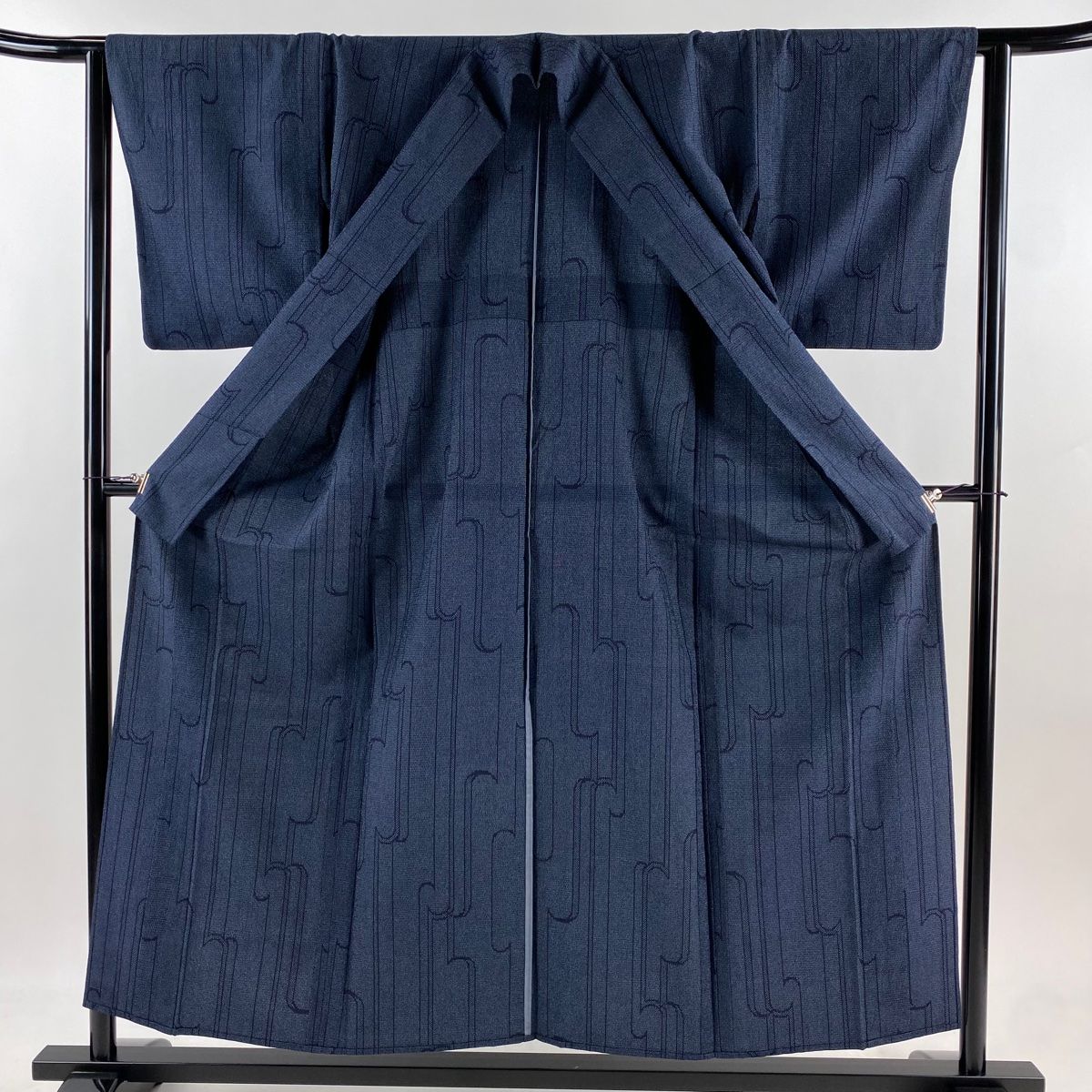 紬 身丈155.5 cm 裄丈63 S 単衣 幾何学模様 亀甲絣 紺色 正絹 秀品