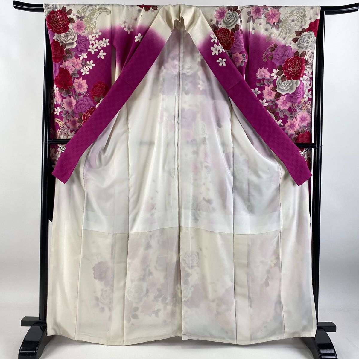 振袖 身丈164 cm 裄丈66 M 袷 袋帯フルセット 落款 薔薇 草花 刺繍 箔 クリーム 正絹