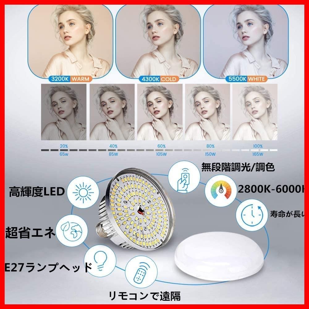 【85W*2高輝度LED電球】標準のE27コンセントを使って、提供している2*85W調光可能のLED電球は3000Wの白熱電球に等しく、全部で90%のエネルギーを節約できます。色温度は2800K-6000Kです、こ様々なニーズに合わせてライトの色を自由に変更できます。従来のセラミック電球よりも輝度・耐用性・耐衝突性が一層アップ。しかも持続可能な使用寿命は約10000時間で、バランスのとれた真っ白日光照明と連続均一な光が得られ、良い撮影環境を提供できます。