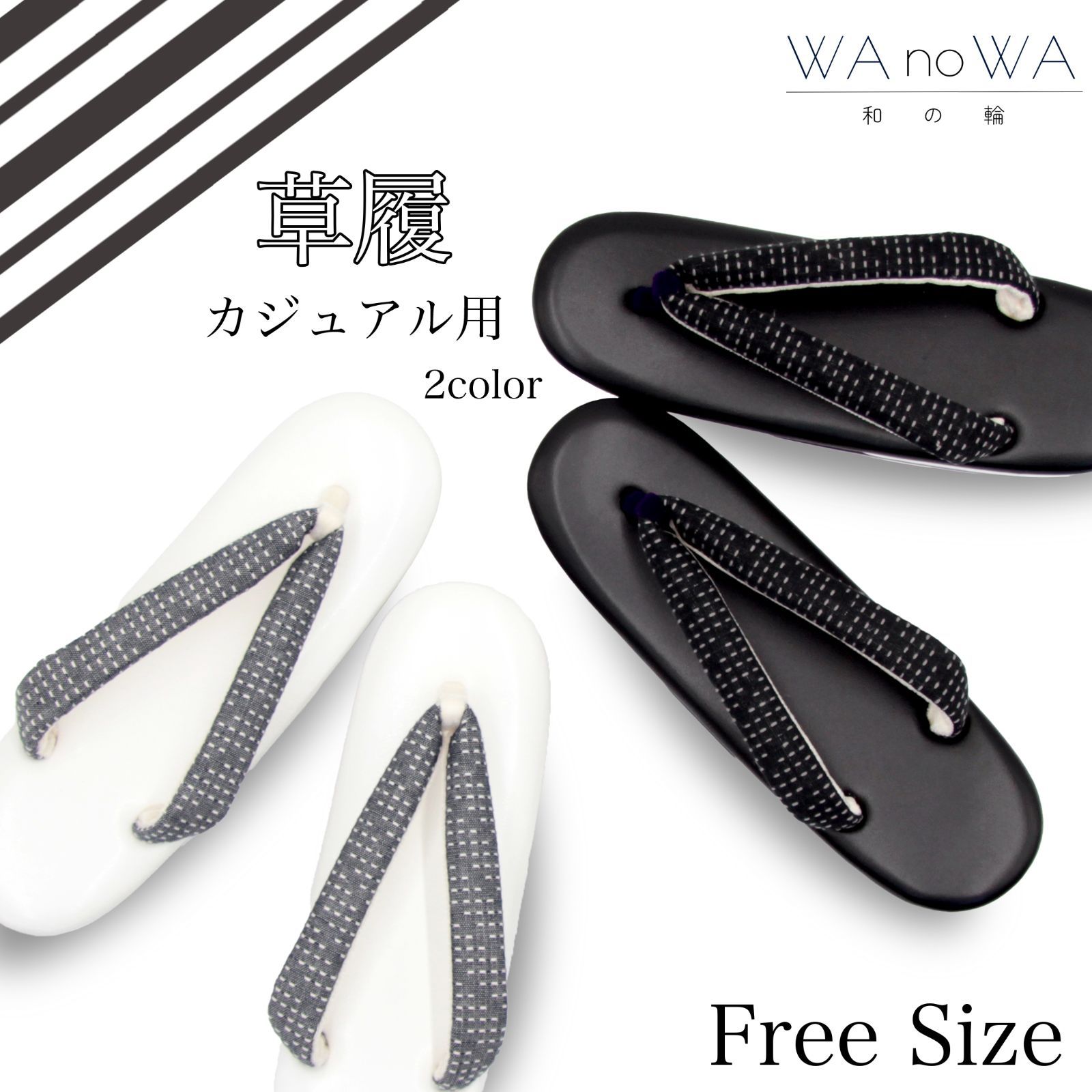 草履 ブラック 黒 ホワイト 白 バイ シンプル カジュアル用 和装 小紋 紬 浴衣 フリーサイズ WA-Z-154 155